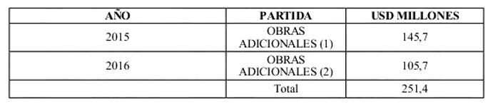 Estas obras tienen aumentos de costos. Los montos asociados a estos costos se expresan en la Tabla siguiente:Decreto 121