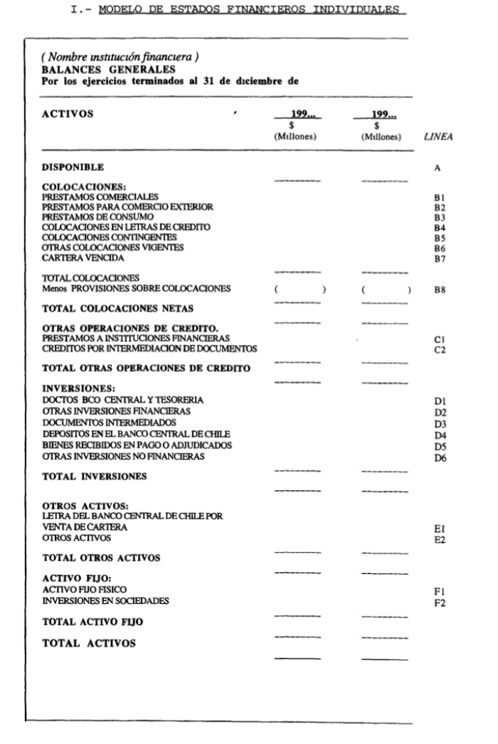 I.- MODELO DE ESTADOS FINANCIEROS INDIVIDUALES