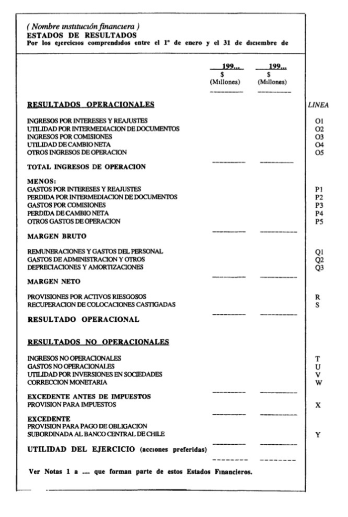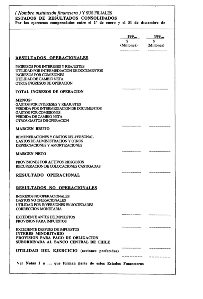 El balance general y el estado de resultados se presentarán según los modelos que se muestran en el Anexo N° 1 de este Capítulo. En el mismo Anexo se incluyen las instrucciones para adecuar los formatos estándares de acuerdo con la situación que se presente en cada empresa.