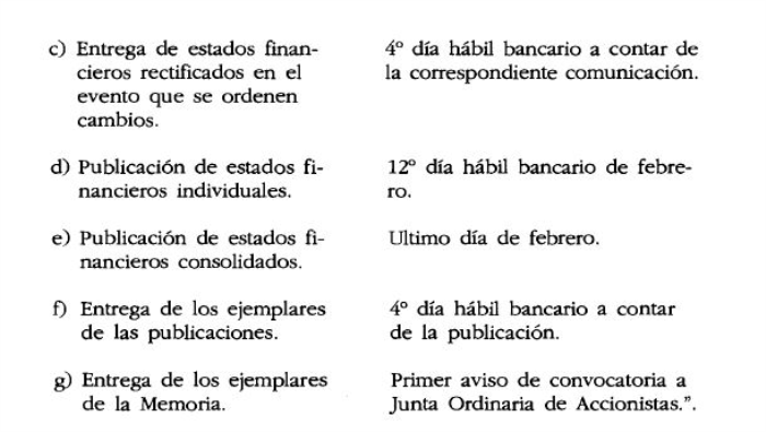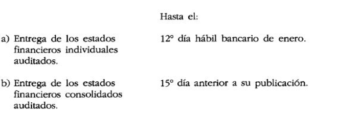 "Las instituciones financieras deberán publicar sus estados financieros individuales a más tardar el duodécimo día hábil bancario del mes de febrero.