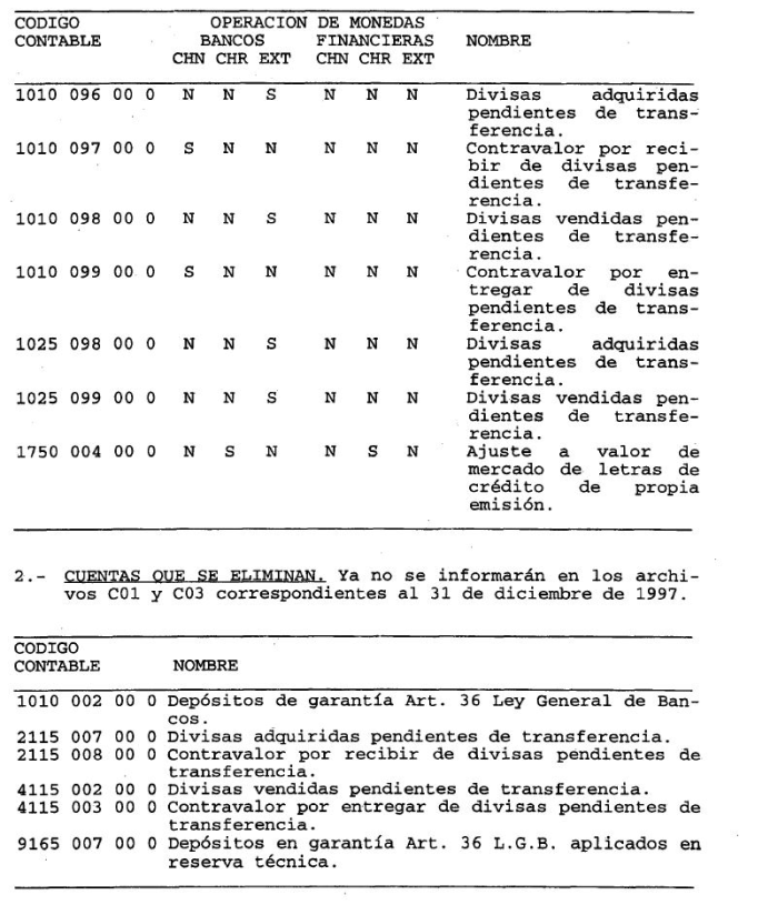 1.- CUENTAS QUE SE CREAN. Se incorporan a contar de la información correspondiente al 31 de diciembre de 1997.