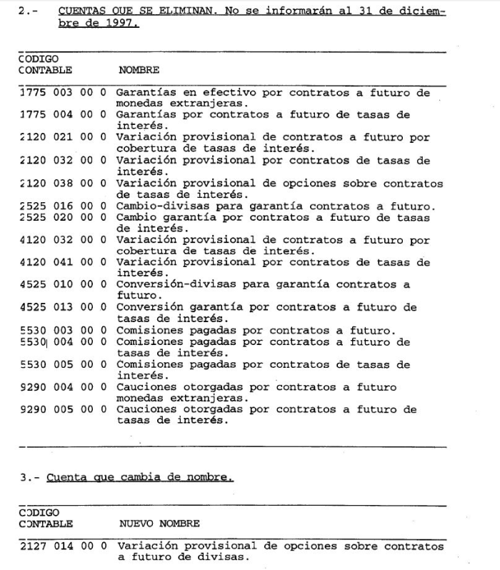 2.- CUENTAS QUE SE ELIMINAN. No se informarán al 31 de diciembre de 1997.