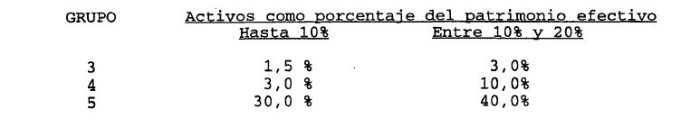 Por otra parte, se constituirá una provisión global equivalente al 100% del exceso, cuando la suma de las operaciones señaladas en los literales D) y F) del N° 1, exceda el 20 % del patrimonio efectivo. No obstante, si la institución mantiene un índice de relación entre activos ponderados por riesgo y patrimonio efectivo igual o superior a un 10% según las normas del Capítulo 12-1 de esta Recopilación, esta provisión se constituirá por lo que exceda del 30% del patrimonio efectivo.