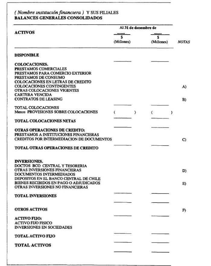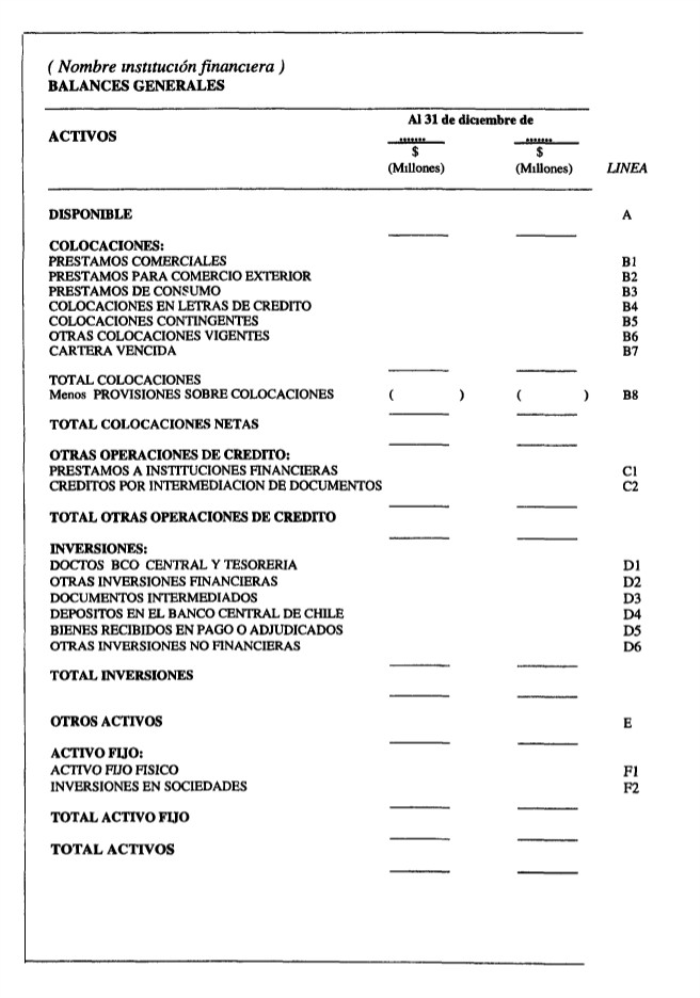 En todo lo demás, las instituciones se ceñirán a las instrucciones para el Balance General, según el modelo incluido en el Anexo N° 1 del Capítulo 18-1 para la presentación de los estados financieros individuales.
