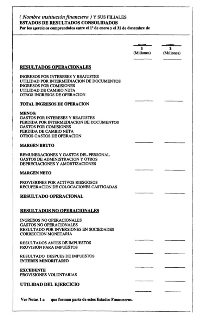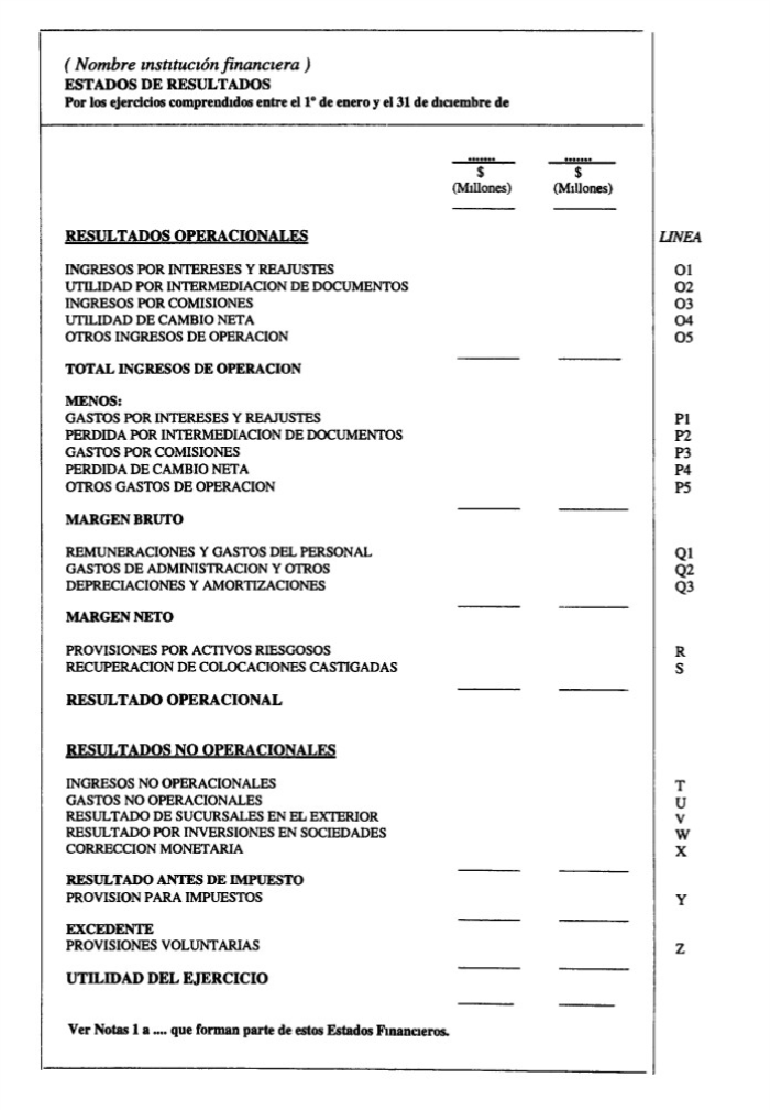 Salvo por el uso de cifras comparativas con el ejercicio anterior, en todo lo demás deberán seguirse las instrucciones para el Estado de Resultados, según el modelo incluido en el Anexo N e 1 del Capítulo 18-1