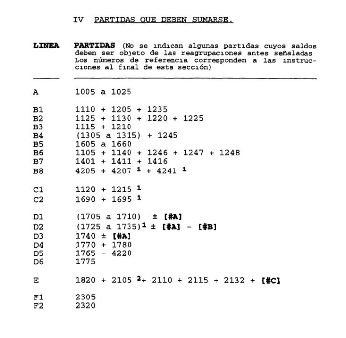 (1) : Suma de los saldos de las partidas 4205, 4207, 4210, 4220 y 4241, que son los que deben mostrarse en el cuadro.