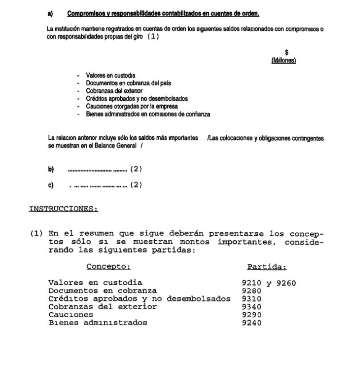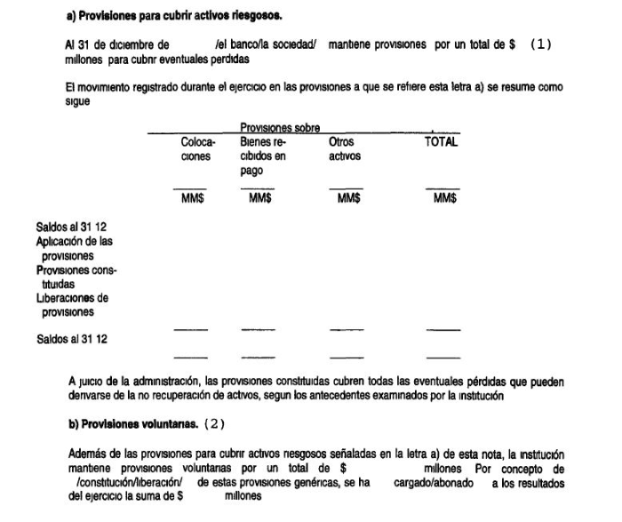 (2) : En caso de que la institución no mantenga provisiones voluntarias (saldo de la partida 4245), en esta letra b) señalará indicará simplemente "No hay.".