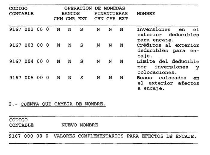 Junto con incorporar el archivo C03 las nuevas cuentas mencionadas en el N° 1, se dejarán de informar en este archivo C03, a partir del 9 de abril de 1998, las siguientes cuentas (que se mantienen aún vigentes para el archivo COI)