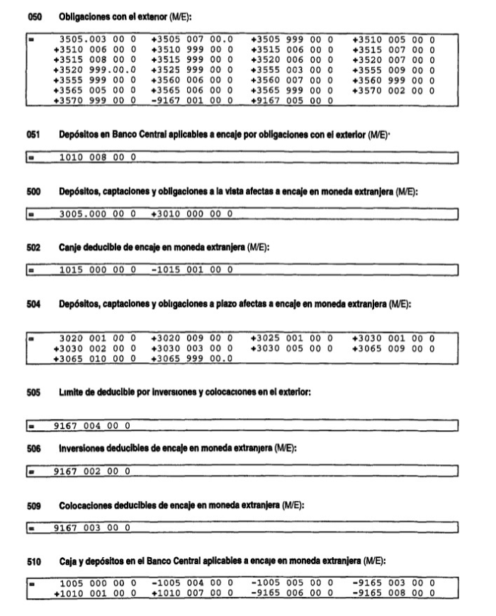 Para el solo efecto de la determinación de la posición de encaje, el importe de las inversiones en el exterior y de los créditos al exterior, susceptibles de ser deducidos de las obligaciones afectas a encaje, será registrado en las cuentas "Inversiones en el exterior deducibles para encaje" y "Créditos al exterior deducibles para encaje", respectivamente, de la partida 9167. Por otra parte, el monto correspondiente al límite del deducible, esto es, el equivalente al 70% del patrimonio efectivo, se incluirá en la cuenta "Límite del deducible por inversiones y colocaciones", de la misma partida.