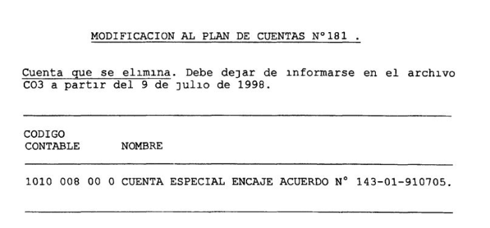 b) Se suprime la "Cuenta Especial de Encaje Acuerdo N° 143-01-910705".
