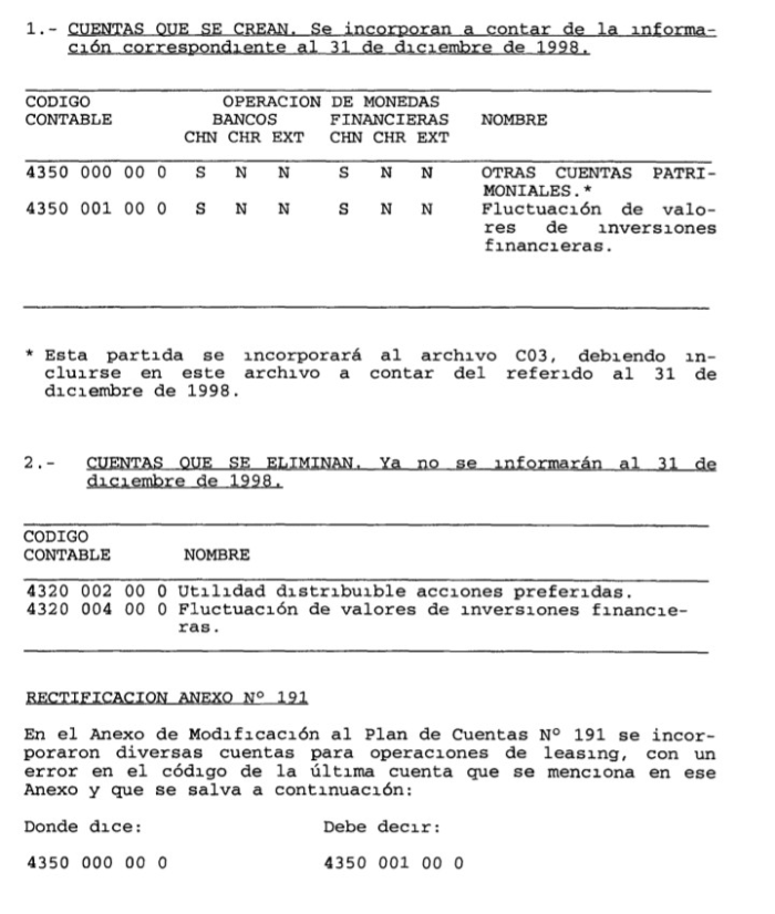 MODIFICACION AL PLAN DE CUENTAS N° 192