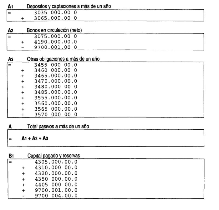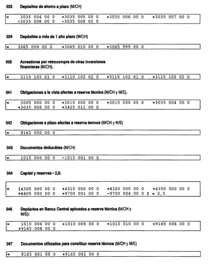 Los indicadores antes señalados corresponden a la suma de los saldos contables que, de acuerdo con las instrucciones vigentes de esta Superintendencia, deben incluirse en las partidas que se indican a continuación, debiendo tomarse para el efecto el saldo total de cada partida, deduciendo el saldo de las cuentas que se indican en algunos casos:
