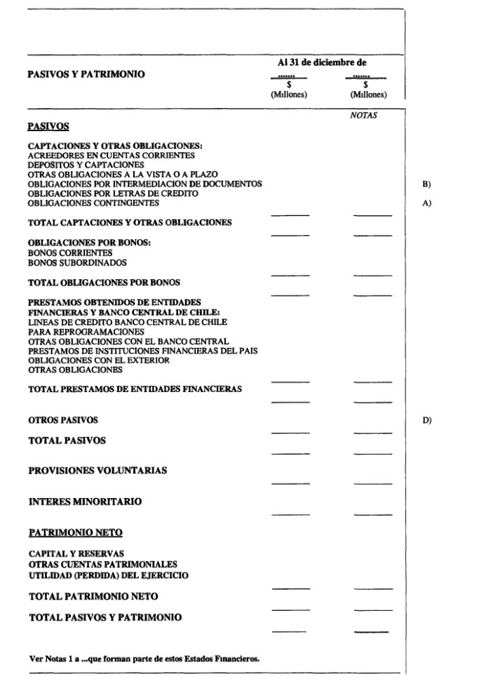 C) Se modifican los modelos de balance y sus instrucciones contenidas en los Anexos N°s. 1 y 2 del CAPITULO 18-1, a fin de que se muestren separadamente los conceptos "Capital pagado y reservas" y "Otras cuentas patrimoniales", rubro este último en que se incluirá el saldo deudor o acreedor, según corresponda, de la cuenta "Fluctuación de valores de inversiones financieras" a que se refiere el Capítulo 8-21.