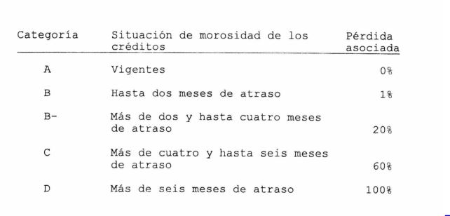 los créditos de su cartera, en las categorías de riesgo que se indican a