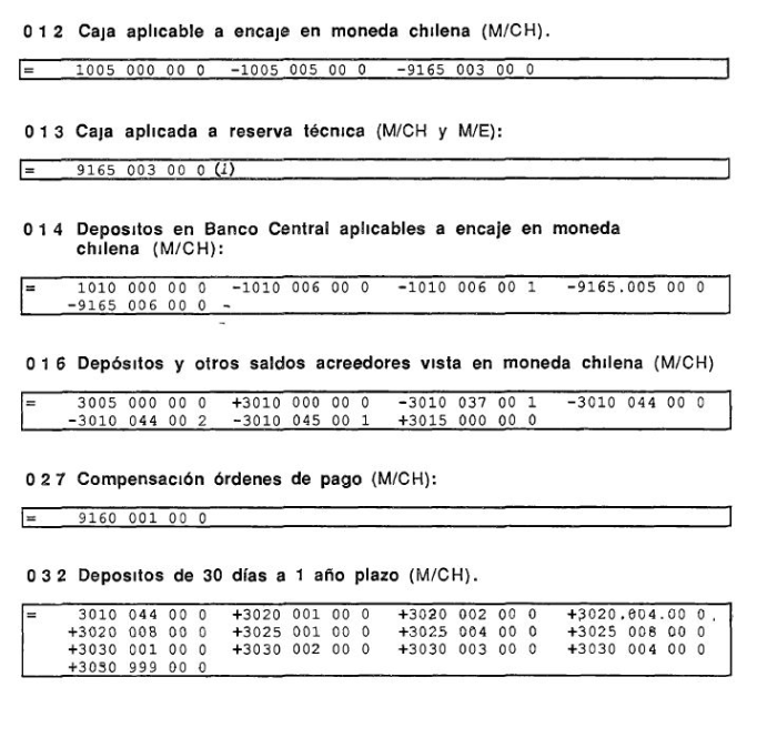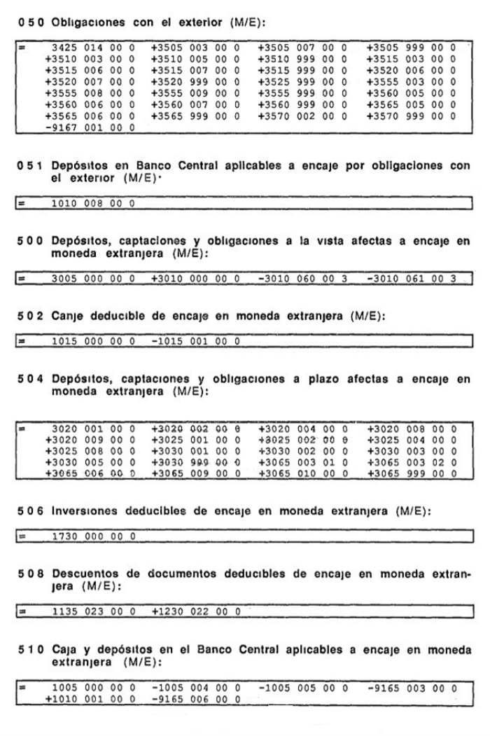 Quedarán sujetos a encaje, a las tasas precedentemente indicadas, los saldos de las cuentas que se demuestren en las siguientes partidas del MB1.