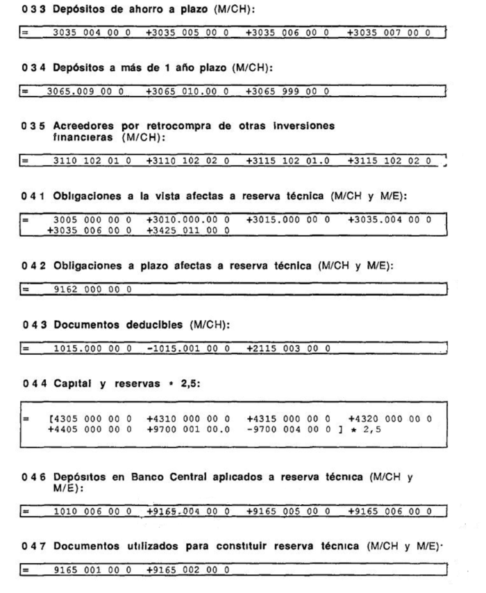 PARTIDAS Y CUENTAS DEL SISTEMA CONTABLE QUE PARTICIPAN EN LA DETERMINACION Y MANTENCION DE ENCAJE Y RESERVA TECNICA