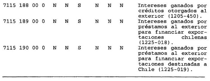 Las demás colocaciones para financiar operaciones de comercio exterior entre terceros países, distintas de las señaladas en la letra a) precedente, serán registradas en la cuenta "Créditos comercio exterior terceros países", de la partida 1110 ó 1205, según sea su plazo.