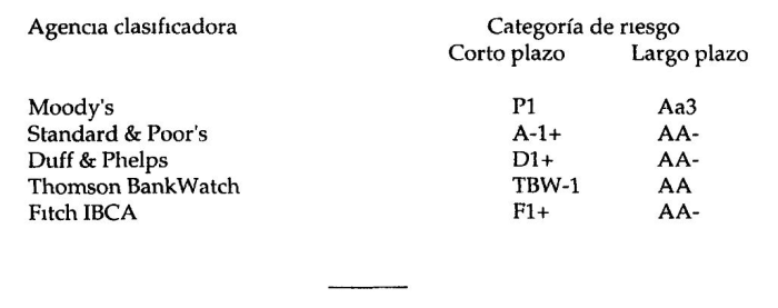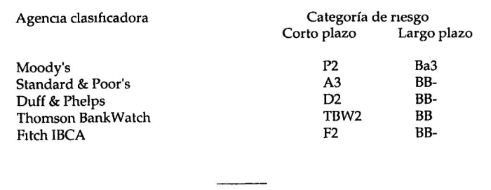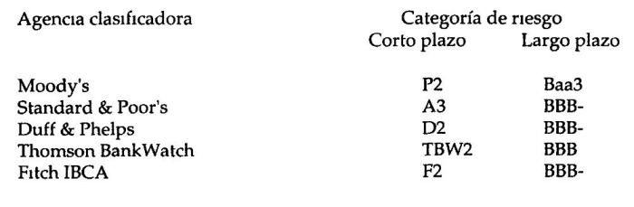 - Que los instrumentos cuenten con una clasificación de riesgo para corto o largo plazo no inferior a las siguientes categorías