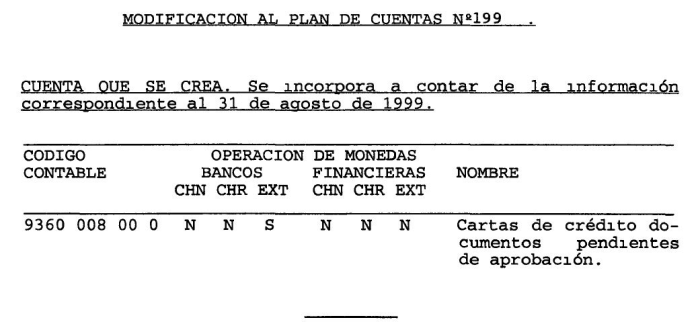 Por lo antes expuesto, se ha resuelto modificar el registro de las mencionadas cartas de crédito, manteniendo en colocaciones sólo las negociadas bajo reserva, y registrando en cuentas de orden aquellas en que ya no subsiste el compromiso asumido mediante la confirmación debido a las discrepancias de los documentos de embarque presentados, con las del acreditivo.