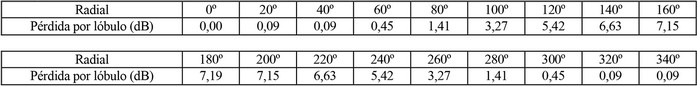 - Diagrama de radiación horizontal, de acuerdo a la siguiente tabla: