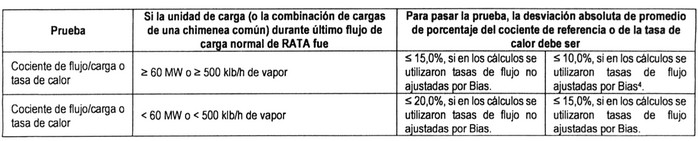 . Para la prueba de cociente de flujo/carga el criterio de aceptación es la desviación promedio absoluta de los cocientes de flujo/carga por hora. En la tabla Nº 2 se resumen los límites de aceptación.