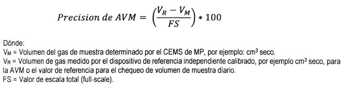 3.5. AUDITORÍA DE VOLUMEN DE MUESTRA (AVM): Es una evaluación de la medición de volumen de muestra de su CEMS-MP, si éste determina la concentración de material particulado basado en una medición de la masa de material particulado en un volumen de muestra extraído y una determinación independiente del volumen de muestra.