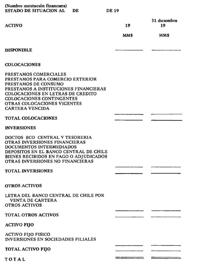 El estado de situación se preparará de acuerdo con el modelo incluido en el Anexo N° 1 de este Capítulo