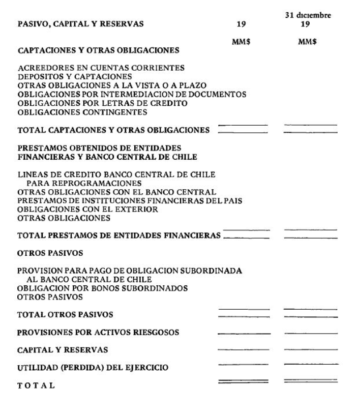 Al de de 19 , el compromiso de destinar los excedentes finales a recompra de cartera al Banco Central de Chile asciende a MM$ (MM$ al 31 12), /sin perjuicio del reparto de dividendos a las acciones con preferencia de acuerdo con el artículo 10 de la Ley N° 18401/ En general, este saldo no se demuestra como un pasivo exigible de la institución debido a que el monto que debe destinarse anualmente a la recompra de cartera está subordinado a la existencia de excedentes finales los cuales, de acuerdo con las normas que rigen para los contratos de compraventa y cesión de cartera, deben aplicarse íntegramente a la recompra de esa cartera, no pudiendo en consecuencia, repartirse como dividendos para acciones ordinarias