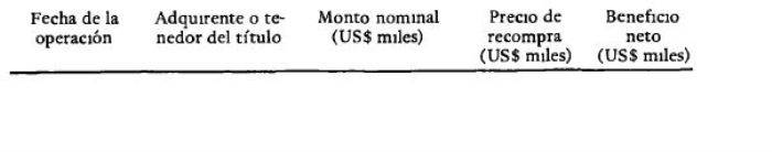 Si bien la redacción de esta parte de la nota queda a criterio de cada institución, al tratarse de operaciones con pagarés de la deuda externa efectuadas con personas relacionadas, deberá presentarse la información respecto a esas operaciones, de la siguiente forma