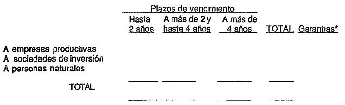 Al ... de .........de 19..., el saldo de los créditos otorgados a personas relacionadas se compone como sigue (cifras en millones de pesos):