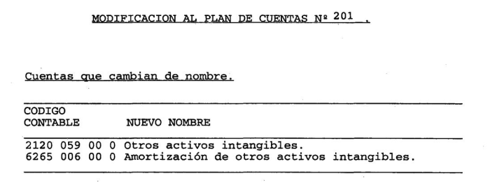 MODIFICACION AL PLAN DE CUENTAS N° 201