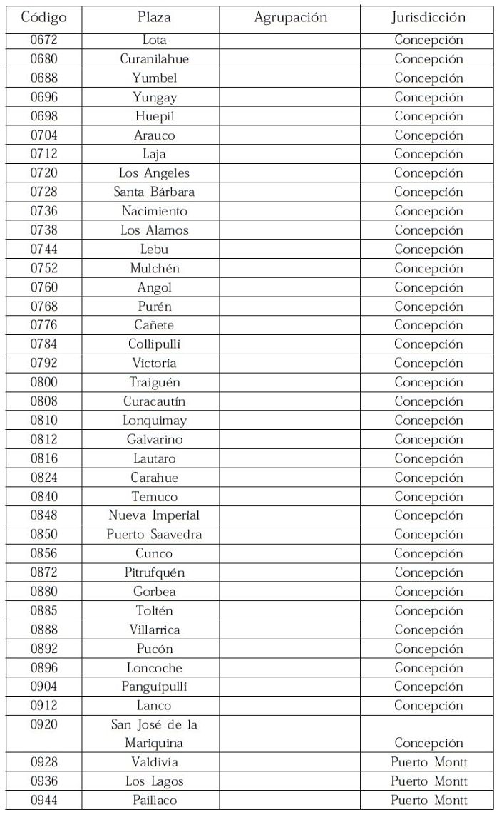 PLAZAS, AGRUPACIONES DE PLAZAS Y JURISDICCIONES