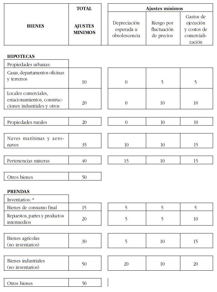 Los porcentajes de descuentos señalados en el cuadro de este Anexo, se refieren sólo a los ajustes mínimos aplicables en cada caso, dependiendo del tipo de garantía y de los bienes de que se trate.