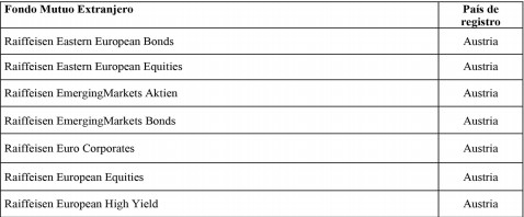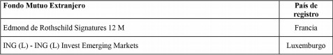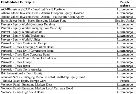 1. Aprobar las cuotas de los siguientes fondos mutuos extranjeros:
