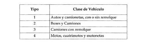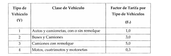 Cuadro: Factores de Tarifas para cada Tipo de Vehículos
