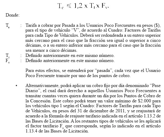 . El Concesionario podrá aplicar una Tarifa de Cobro por Pasada a los usuarios poco frecuentes, definida de la siguiente manera: