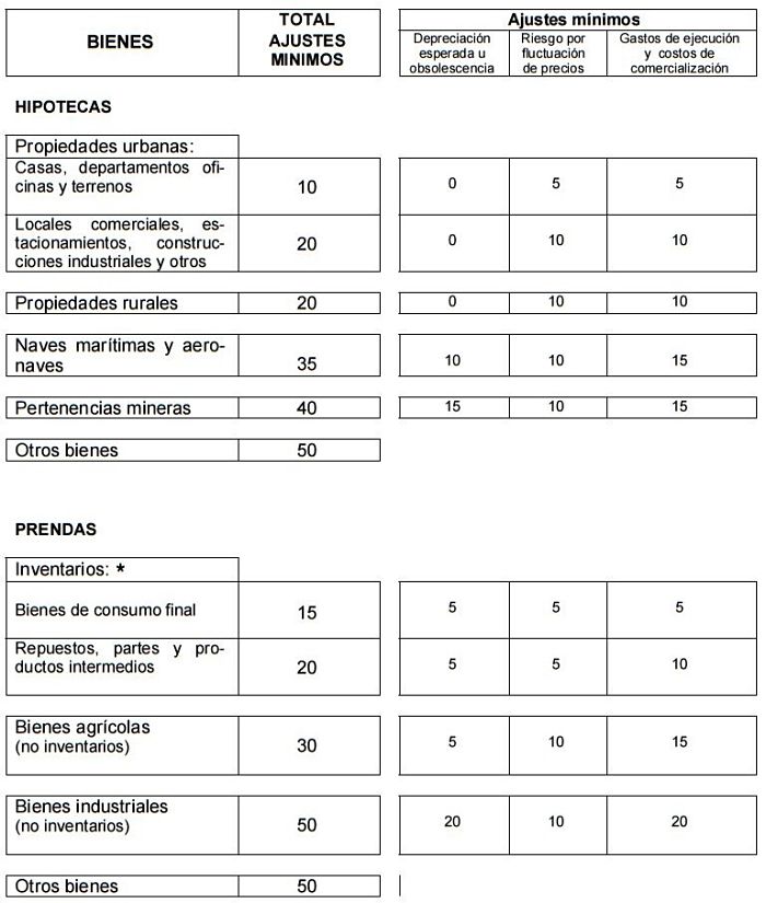 Los porcentajes de descuentos señalados en el cuadro de este Anexo, se refieren sólo a los ajustes mínimos aplicables en cada caso, dependiendo del tipo de garantía y de los bienes de que se trate.