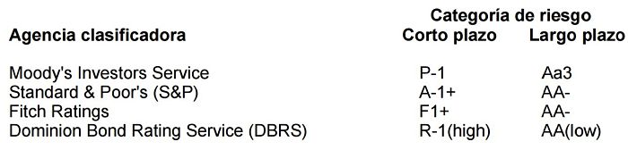 CLASIFICACIÓN DE BANCOS EMISORES DE CARTAS DE CRÉDITO NEGOCIADAS