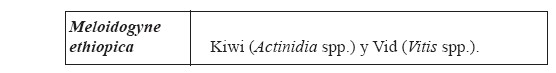 4.5. Agréguese a la lista de nematodos en plantas, la especie Meloidogyne ethiopica en los hospedantes Kiwi (Actinidia spp.) y Vid (Vitis spp.), a continuación de Meloidogyne arenaria, quedando como sigue:
