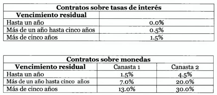 Un contrato que contenga una cláusula que le otorgue al banco la opción de terminarlo en un fecha específica y el derecho a recibir o a pagar integralmente el ajuste de valor razonable acumulado hasta esa fecha, puede considerarse como un contrato que tiene un vencimiento igual al período que resta hasta la próxima fecha en que se pueda ejercer ese derecho, por lo que el factor de conversión que debe aplicarse es aquel que corresponde a ese período.