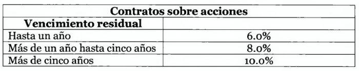Los contratos de derivados sobre acciones que puedan pactar las filiales, incluyen futuros, forward, opciones compradas e instrumentos similares que tengan como subyacente el precio de acciones individuales o índices de acciones.
