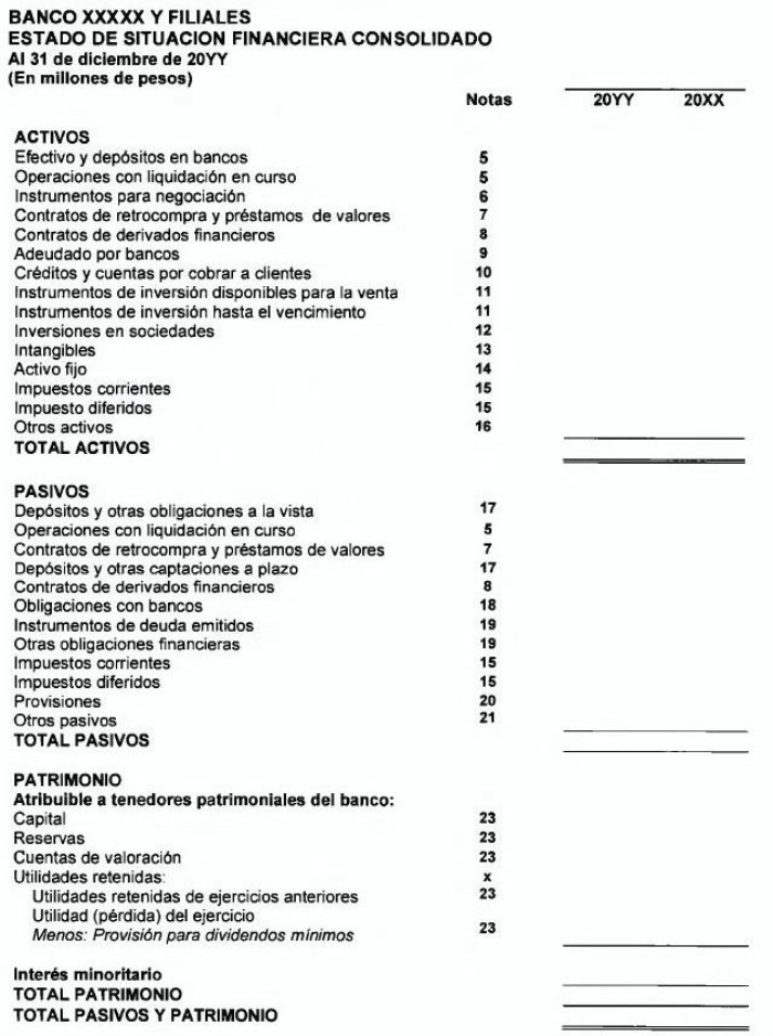 Tanto los formatos del Estado de Situación Financiera y del Estado de Resultados
