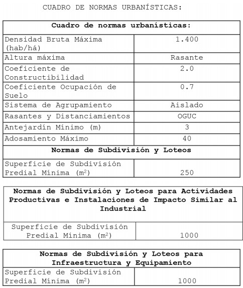 1. Residencial: Vivienda, sin perjuicio de lo cual, se permite el comercio en el 1er piso. Aquellos usos definidos en el art. 2.1.25 de la OGUC y los complementos a vivienda establecidos en el art. 2.1.26 de la OGUC.