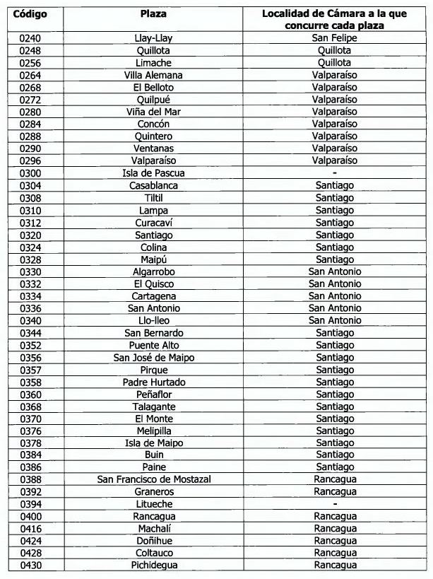 Debido a que se agrega la nueva plaza de Pichidegua a la nómina contenida en el Anexo N° 1 del Capítulo 5-1, se reemplaza la hoja N° 2 de dicho Anexo, por la que se acompaña.
