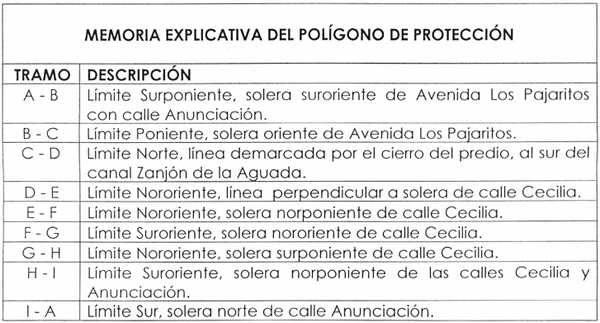 Debe decir: "limitado al Norte por el cierro del predio, al sur del canal Zanjón de la Aguada; al Sur con la línea de solera norte de la calle Anunciación; al Oriente con la línea de solera de la calle Cecilia y al Poniente con la línea de solera de la Avenida Los Pajaritos."