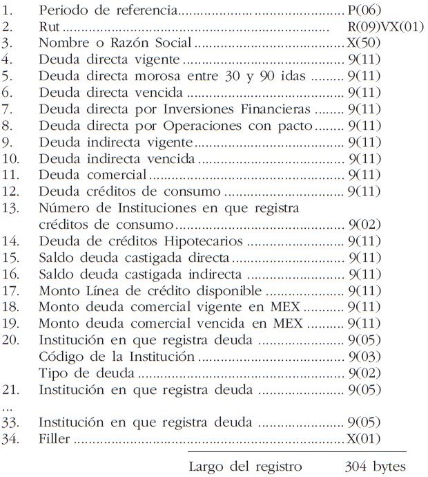 de la Institución, que registra el deudor en el sistema financiero, según la