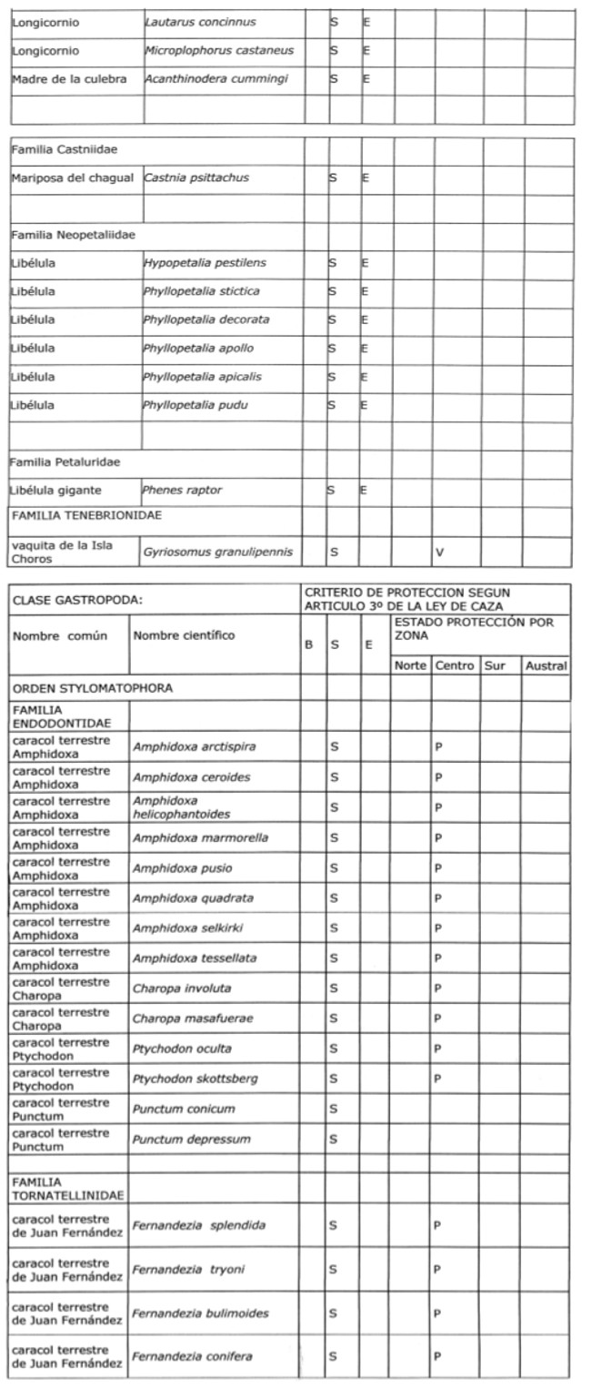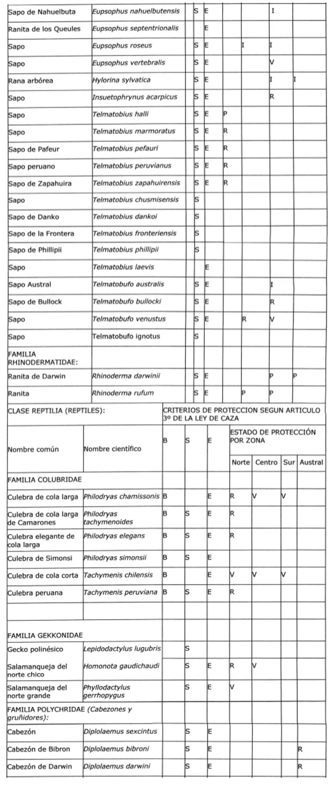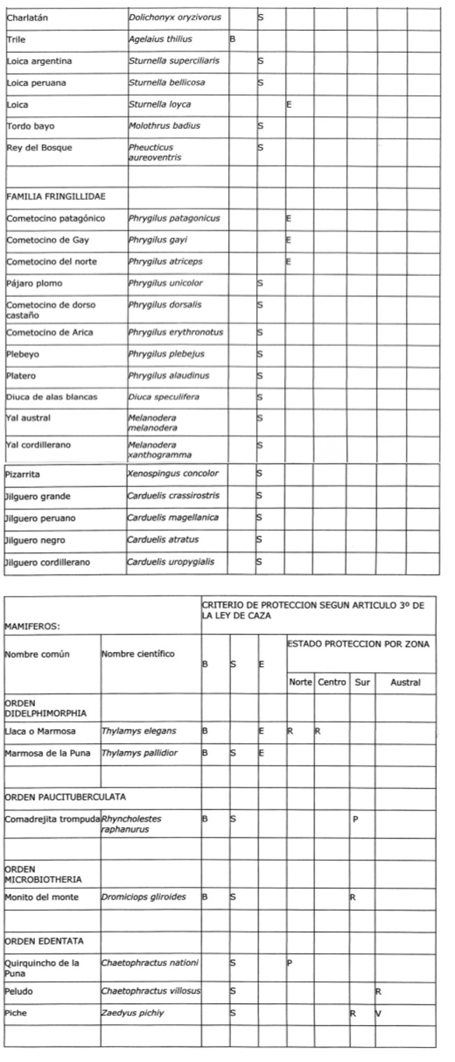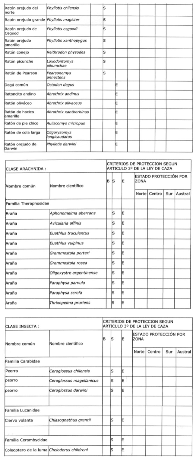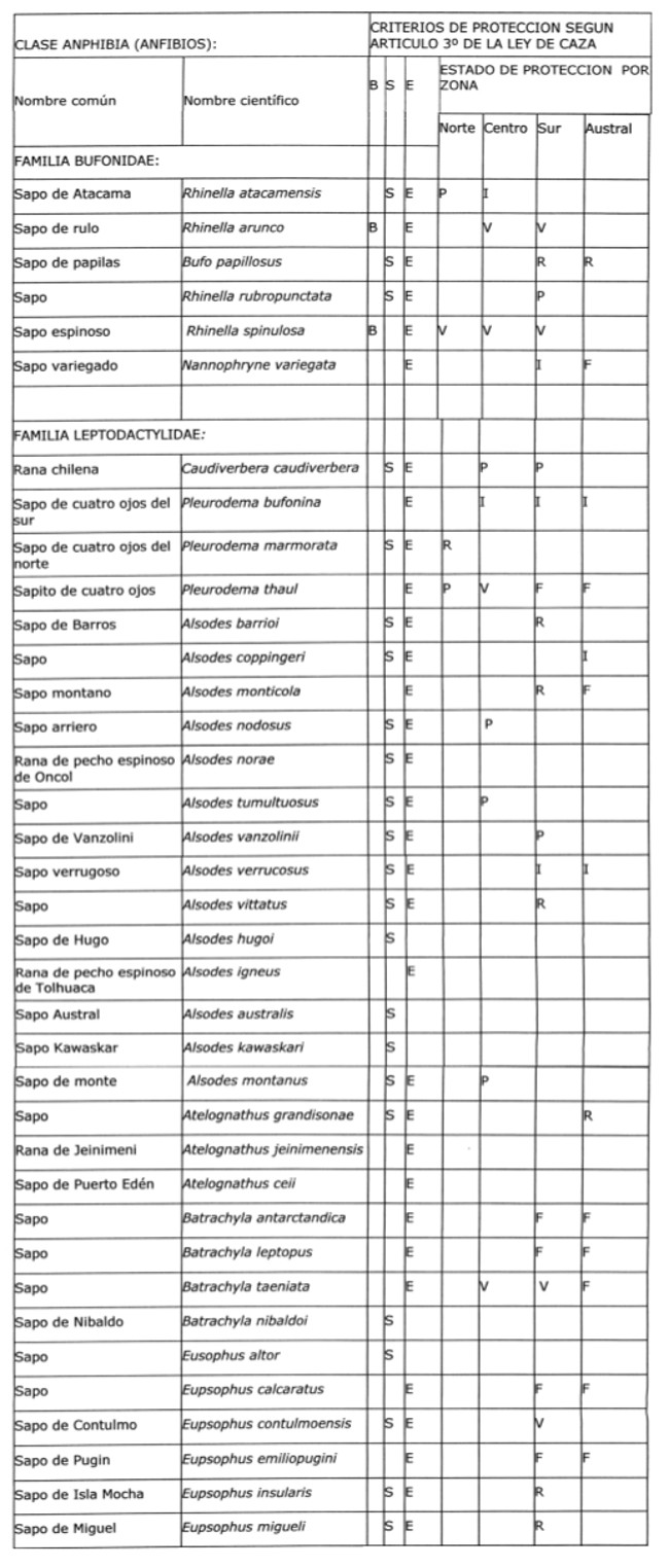 "Artículo 4º.- Se prohibe la caza o captura en todo el territorio de las siguientes especies de anfibios, reptiles, aves, mamíferos e invertebrados: