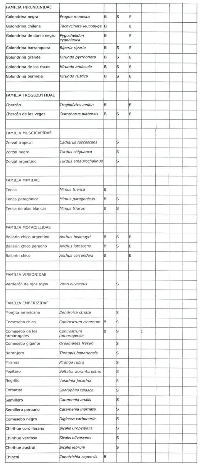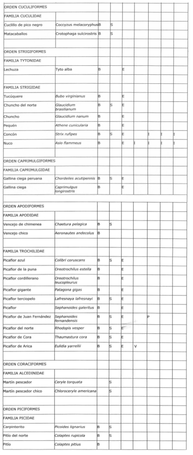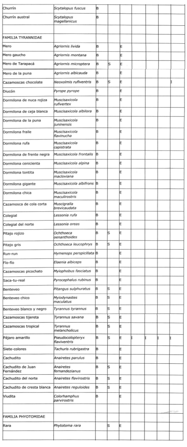 E: Especie catalogada como benéfica para la mantención del equilibrio de los ecosistemas naturales