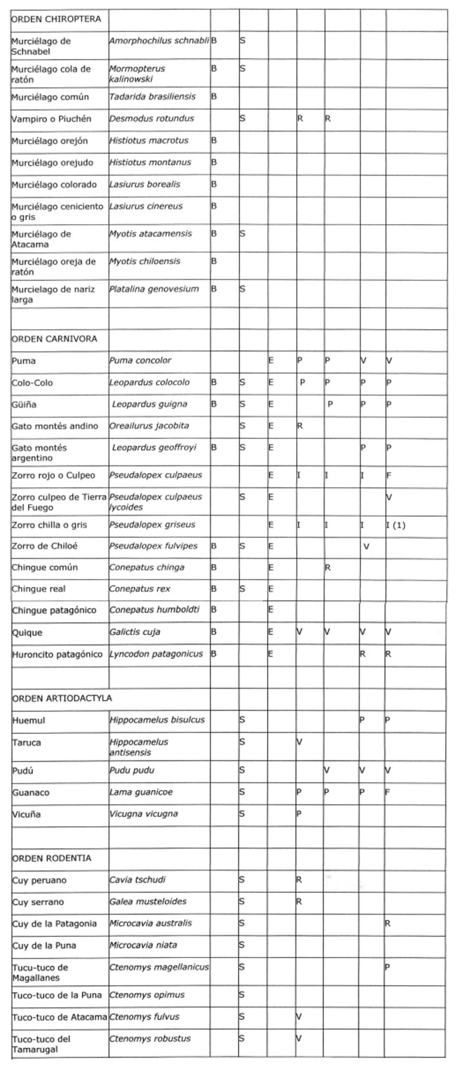 (1) Especie Fuera de Peligro (F) en la Región de Magallanes y la Antártica Chilena.".