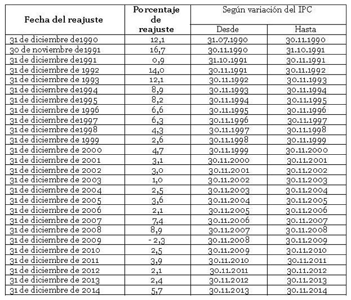 Debido a que el índice de precios al consumidor experimentó una variación de 5,7% en el período comprendido entre el 30 de noviembre de 2013 y el 30 de noviembre de 2014, las entidades bancarias deben aplicar dicho porcentaje para determinar el reajuste de las amortizaciones y de los saldos de los créditos que hayan adquirido de la Asociación Nacional de Ahorro y Préstamo, al 31 de diciembre de 2014, de conformidad con lo dispuesto en el Art. 44 de la Ley N° 18.591.